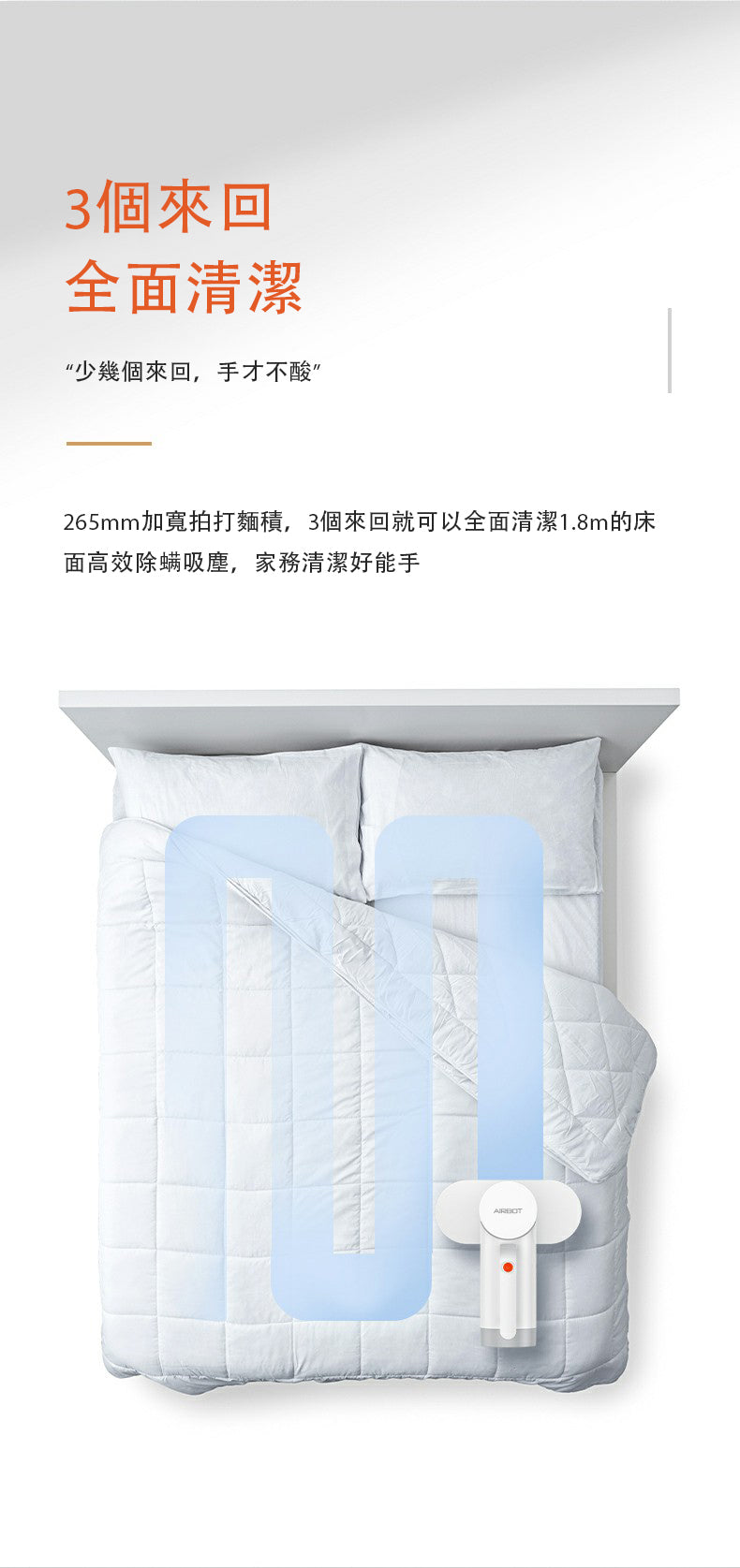 高強度 UV-C 光可殺死床單上 99% 的細菌和細菌。電動清潔頭8000Hz振動,物理清除沙發坐墊、床單上的蟎蟲屍體,快速清除。